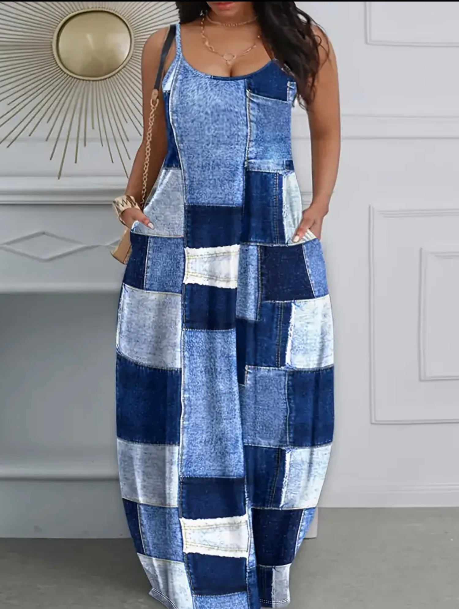 This patchwork print dress features a pocket, making it both stylish and practical. The unique print adds a touch of personality, while the pocket provides a convenient place to store small essentials. Stay on trend with this must-have dress. Patchwork print dress with pockets little stretch to it.